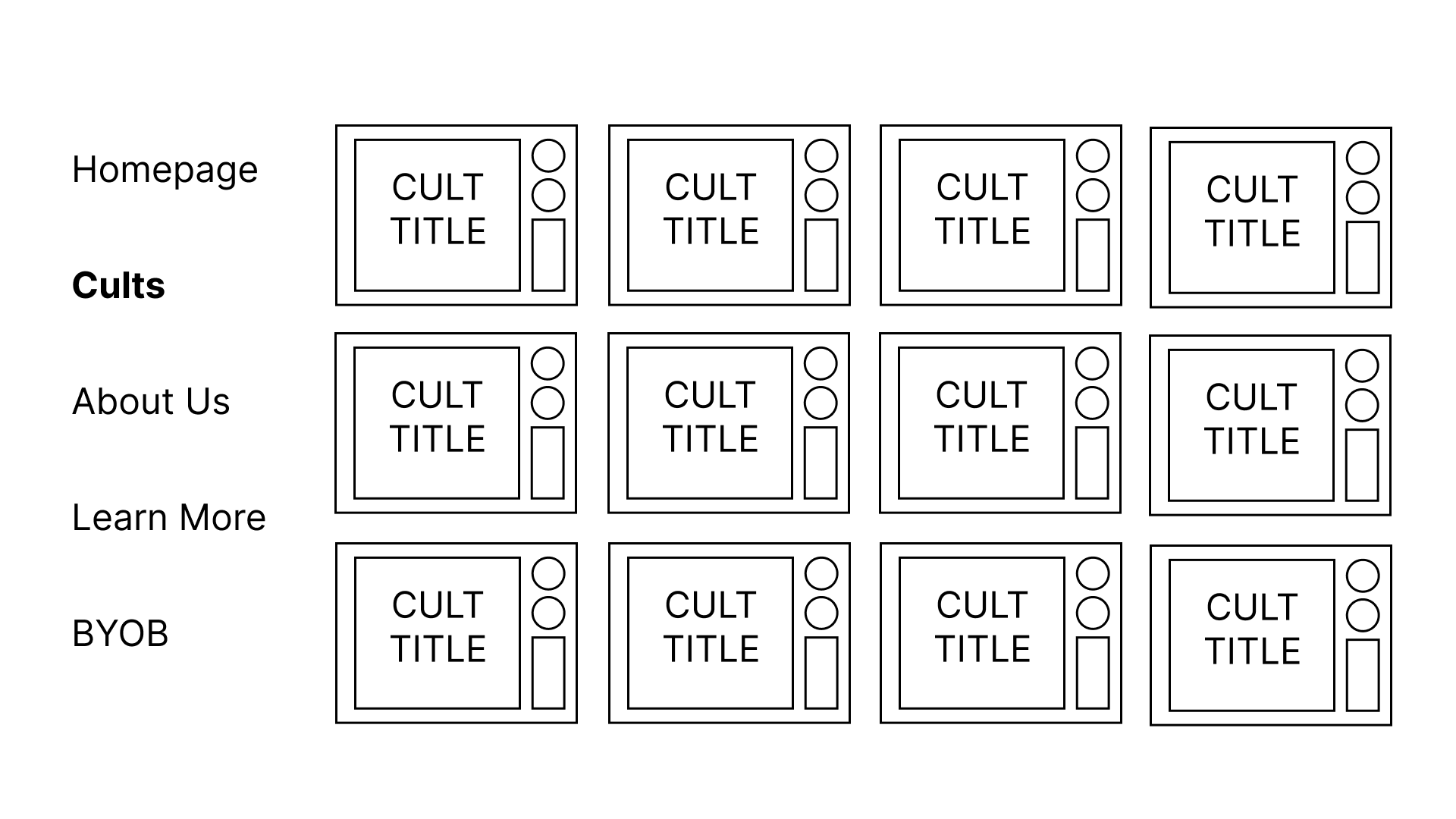 My idea and inspiration for this project was to focus on the marketing characteristics of cults. All cults started by offering something to their potential members and using this types of bait to lure them in. Things like - success, salvation and sometimes even alien transformation. In order to do that, I wanted to use the visuals of old TVs and specifically the layout and language of tv shopping channels.